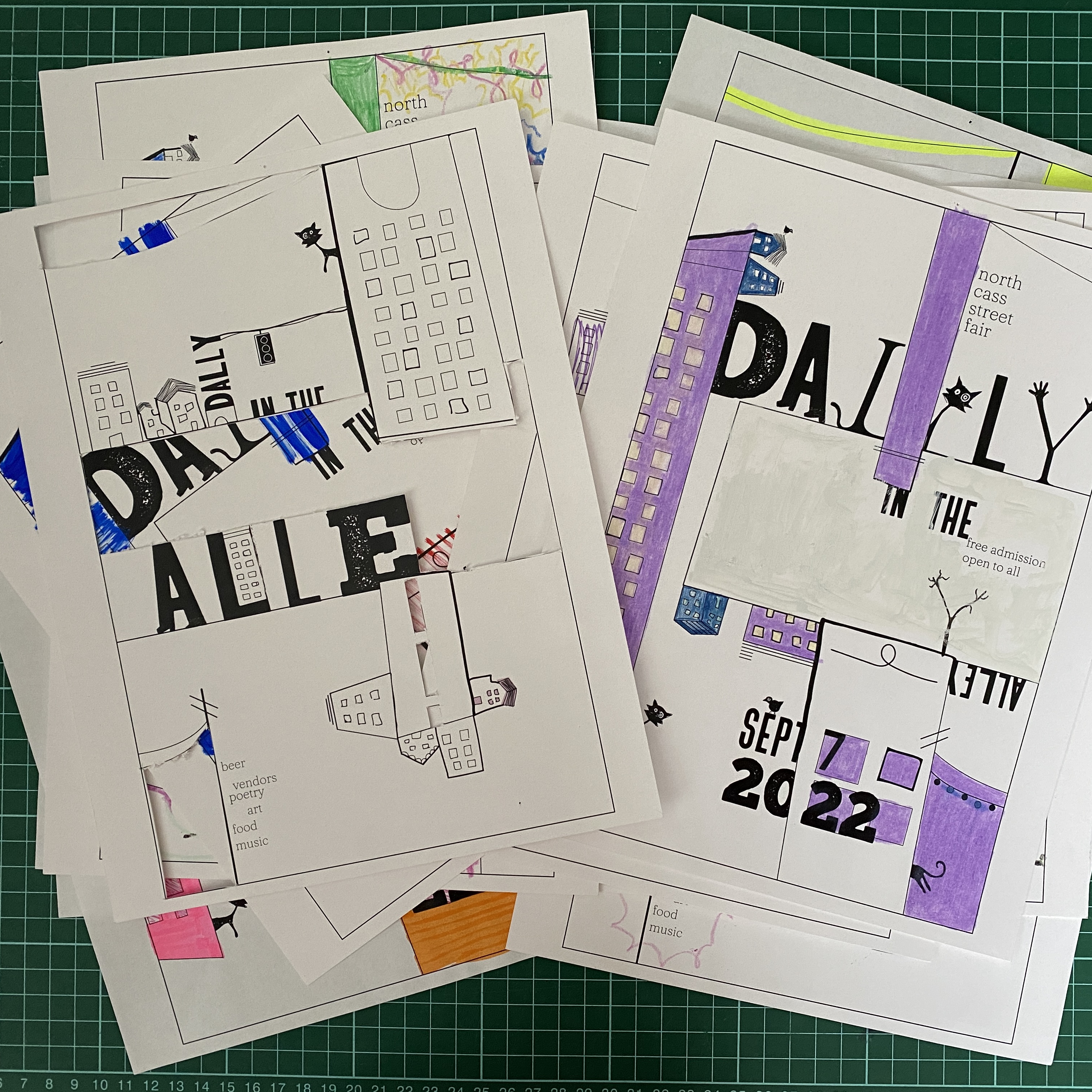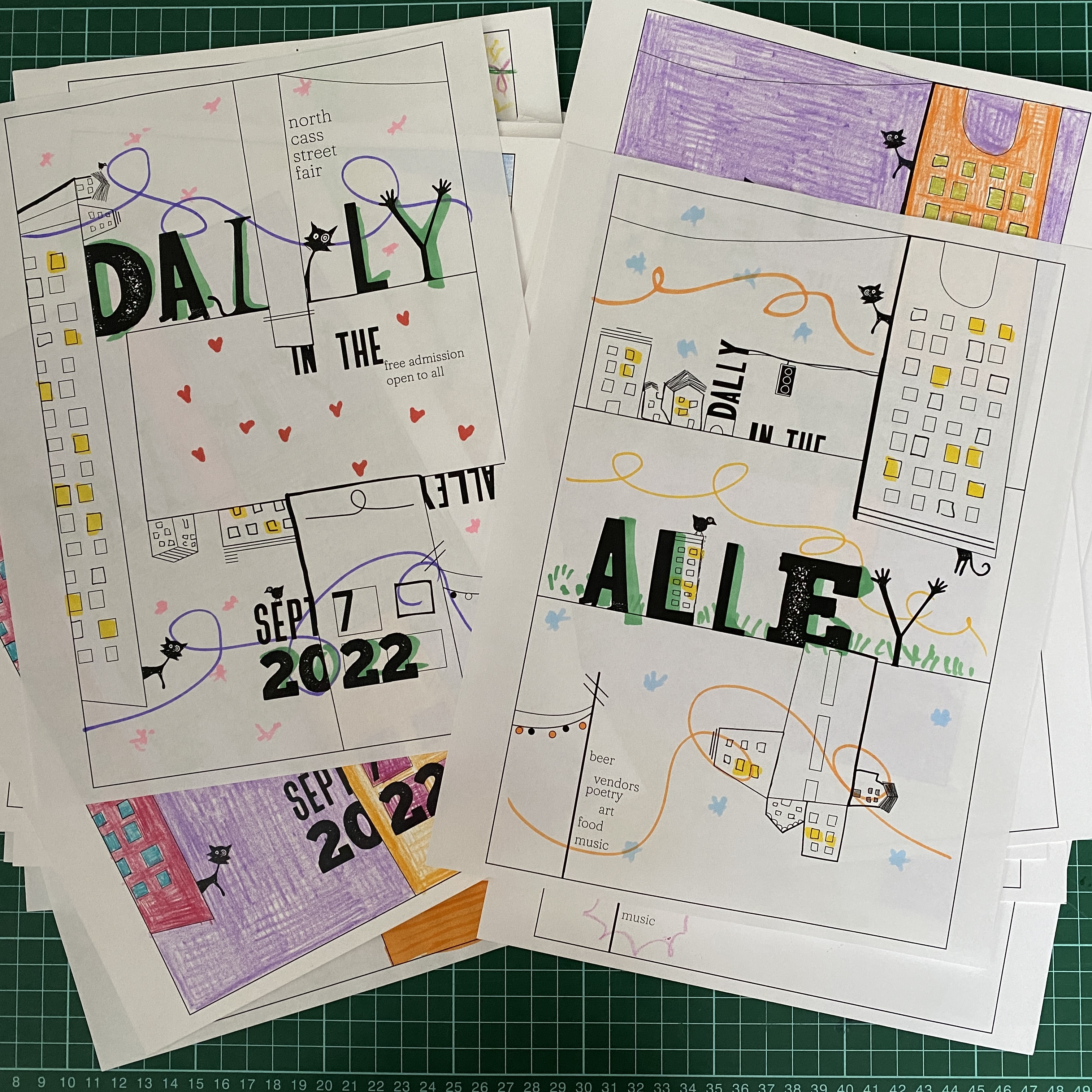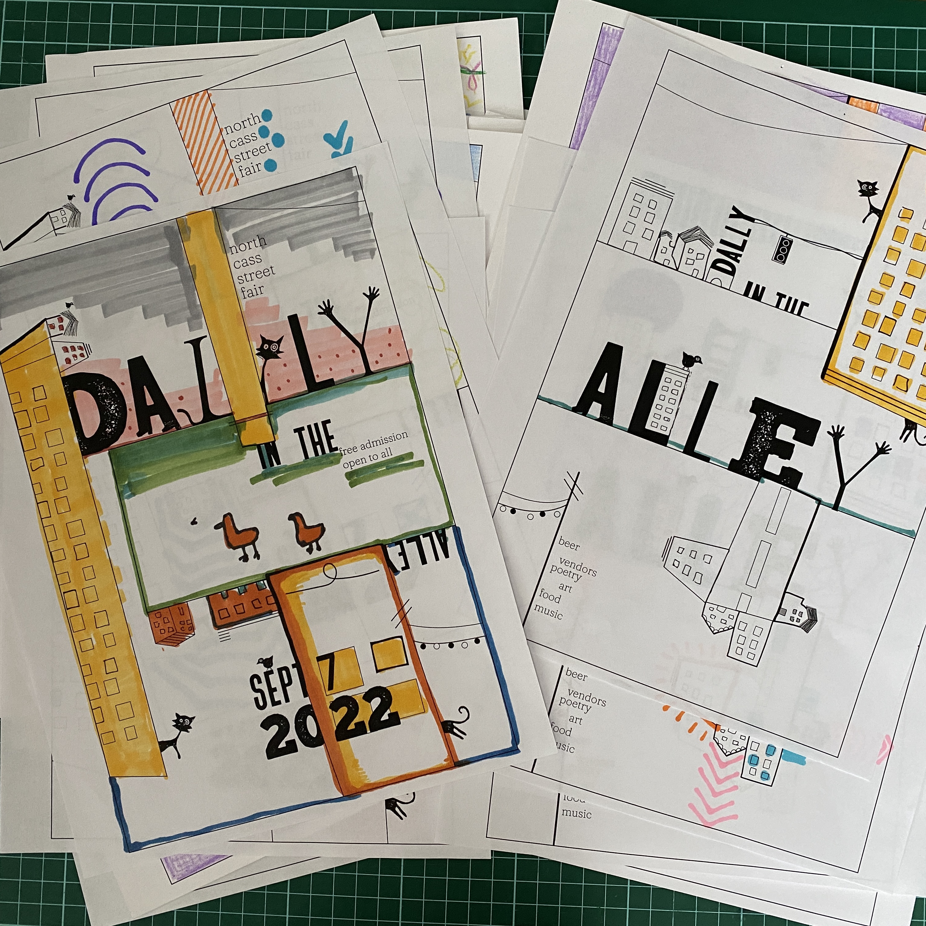 This poster series was based off of the location of the original Alley before the festival exploded into a much larger event. As an additional element, a coloring page version was handed out freely to anyone as an ode to the communal, artistic, and interactive nature of the festival.