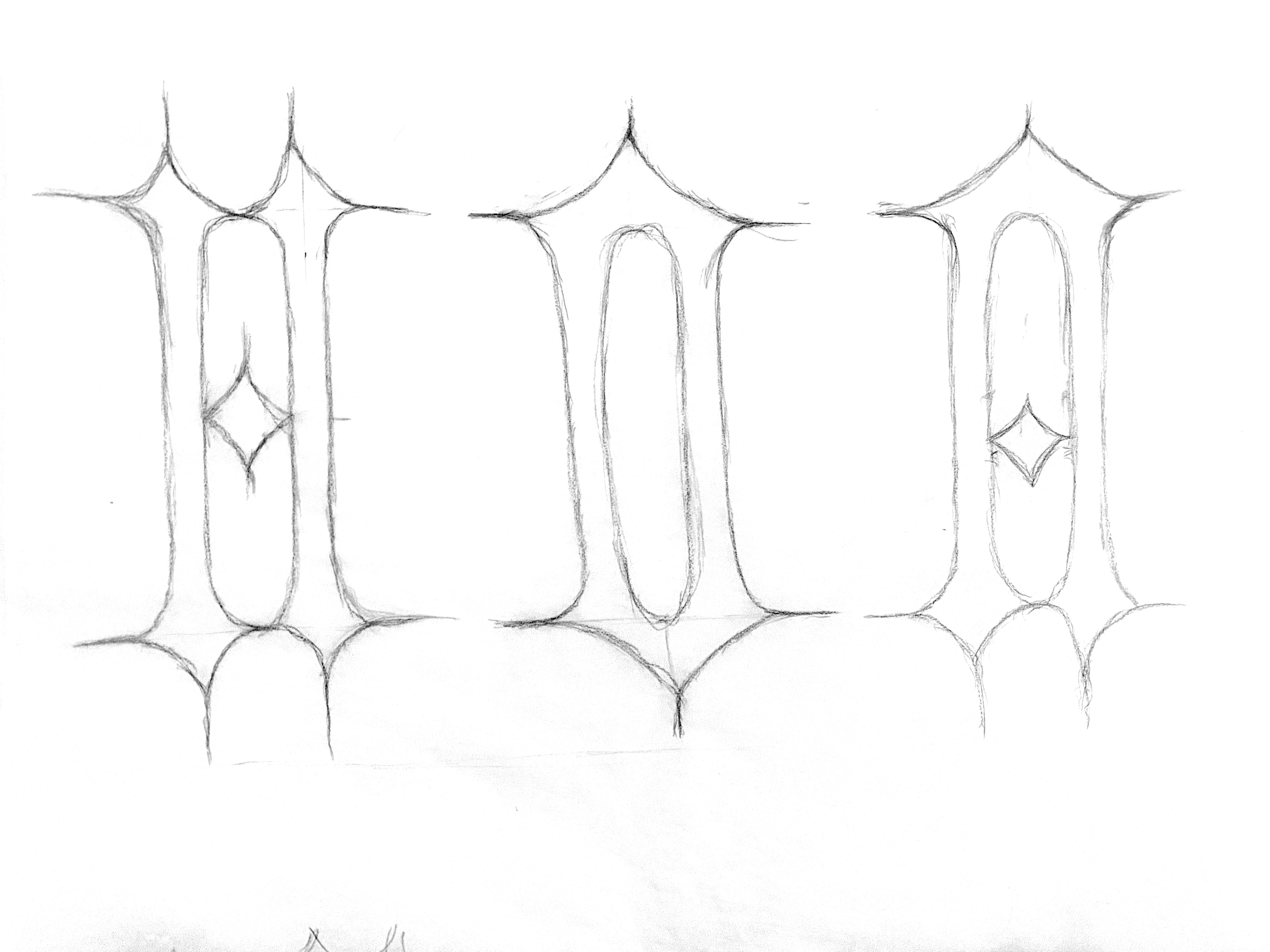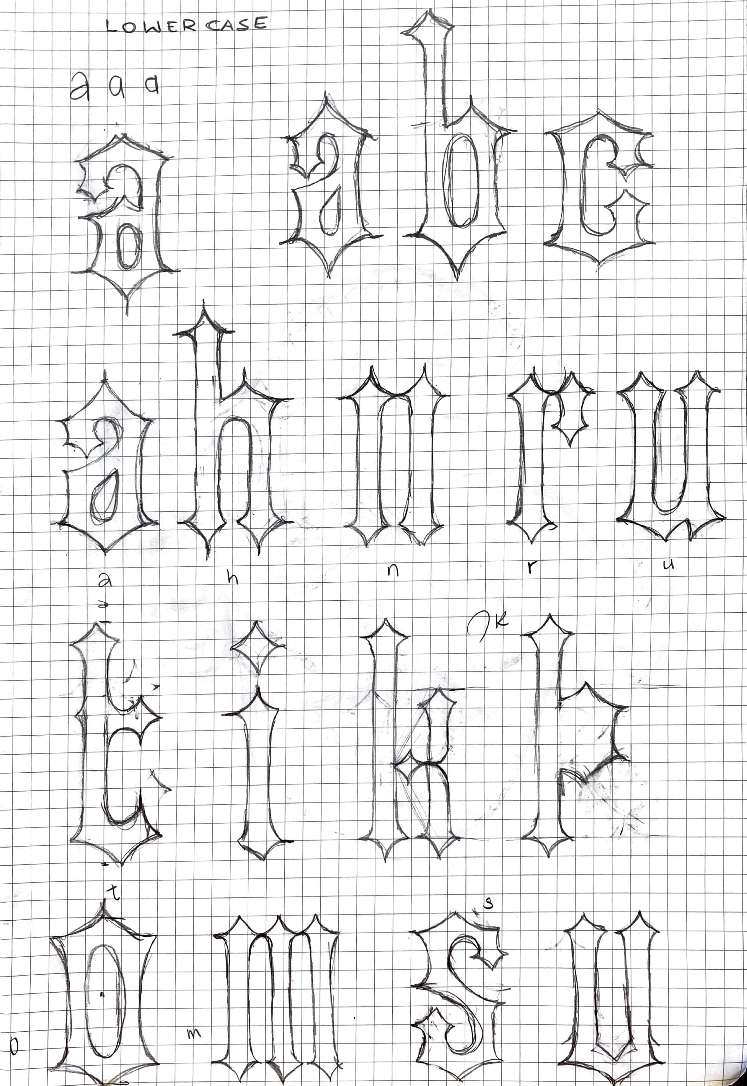 In collaboaration with The Henry Ford Museum, our team of designers were granted access to the expansive non public archives of the museum to take inspiartion from the countless type specimens found on everything from old publications, the carvings on wooden wheels, vintage games, to old toasters. Documenting as much as we could we then all individually categorized and narrowed down to find specimens to inspire our own typeface design. I was pulled towards a range of script, blackletter, and fraktur fonts. After a lot of hand sketching and quick digital prototyping the typeface started to move towards a modular system comprised of a base kit of parts that could be used to create a consistent family throughhout both the upper and lowercase alphabet.
